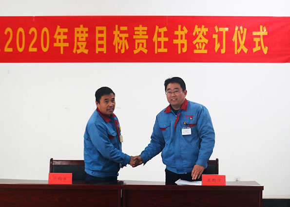 2020111日下午,山東國眾在辦公樓一樓會議室舉行年度目標責任書簽訂儀式。公司領導、全體中層管理干部參加了此次簽字儀式。公司常務副總經理劉文吉主持儀式。